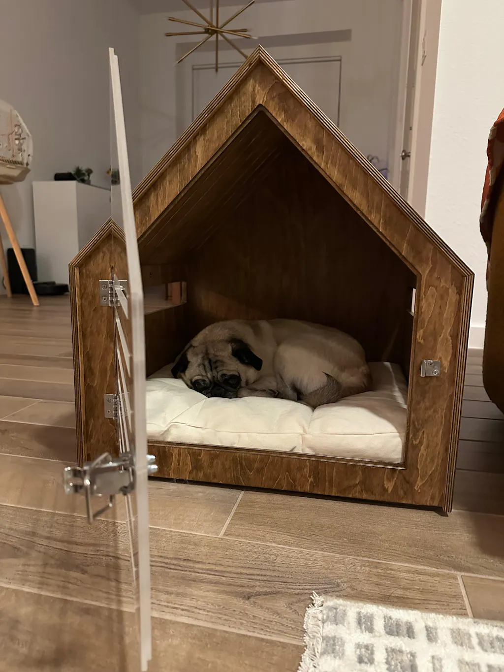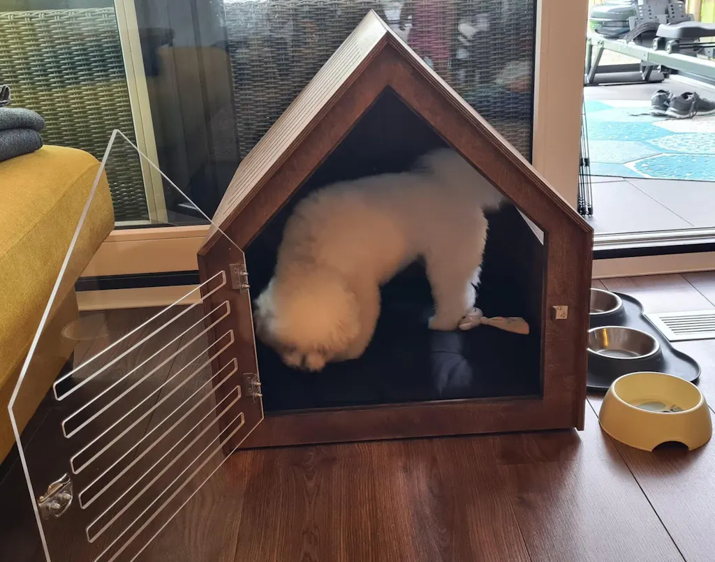 Verschönern Sie Ihr Zuhause und verwöhnen Sie Ihr Haustier mit diesem wunderschön gefertigten Hundebett für den Innenbereich – eine perfekte Mischung aus Ästhetik, Funktionalität und Komfort. Dieses Hundebett aus Holz wurde für moderne Innenräume entworfen und definiert traditionelle Hundeboxen mit seiner schlanken Silhouette und möbelähnlichen Eleganz neu.