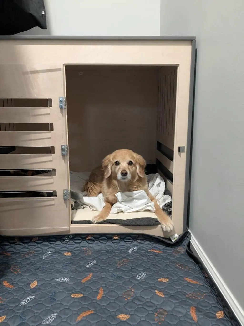 Give your dog a cozy personal space and elevate your home’s style with this unique dog crate!