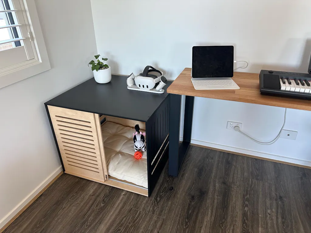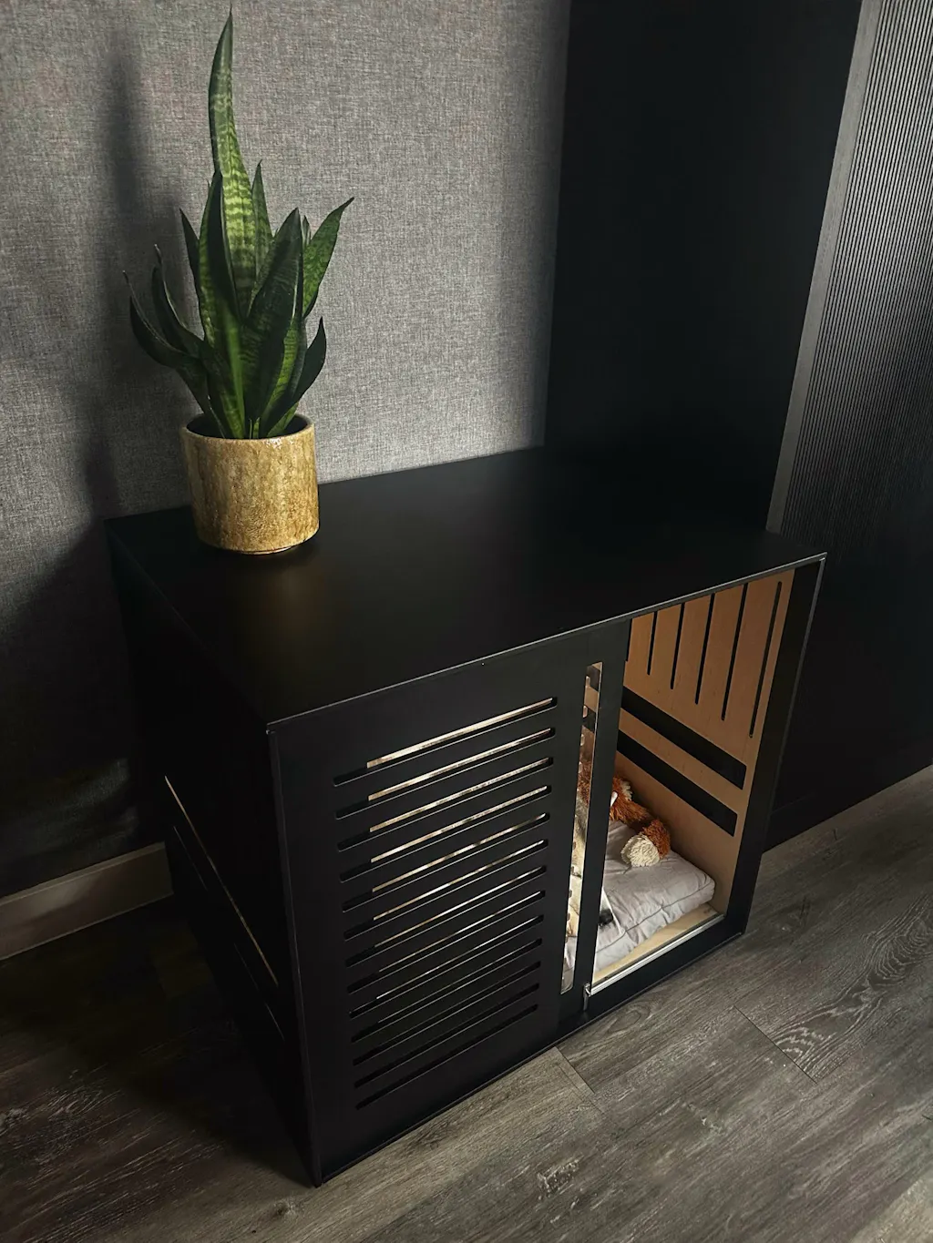 This dog crate combines minimalist design with functionality, making it a great addition to both modern and classic interiors.