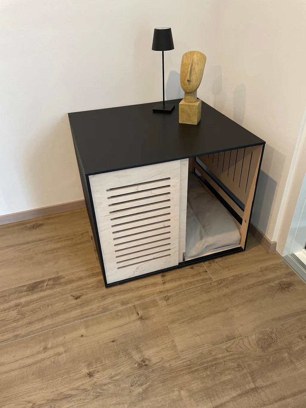 Give your pet the perfect resting place that seamlessly blends into your interior. This dog crate is not just a cozy and comfortable space for your furry friend but also a practical furniture piece that can double as a bedside table or a compact shelf for various items.