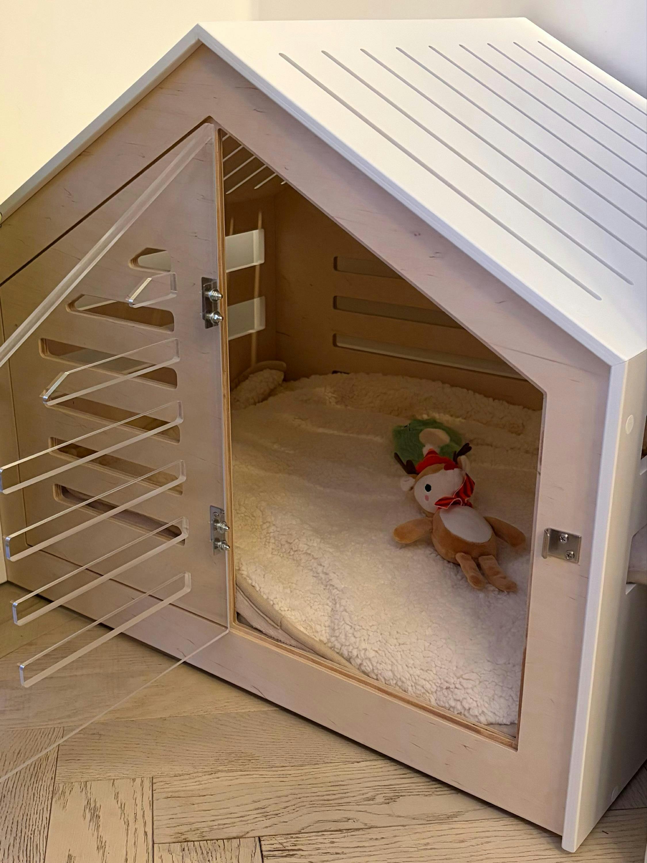 Give your furry friend the perfect cozy retreat with our Modern Wooden Dog Crate. Crafted from premium-grade birch plywood, this stylish and durable dog crate combines functionality with sleek design, making it a great addition to any home decor.